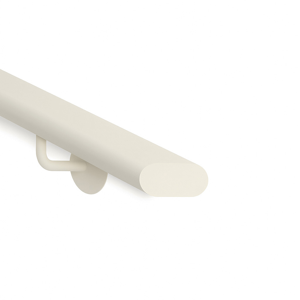 Door de grotere greepdiameter voelt deze leuning extra stevig en veilig aan. De ovale trapleuning is opgebouwd uit hoogwaardig staal en afgewerkt met een premium poedercoating die beschermt tegen roest, krassen en slijtage.